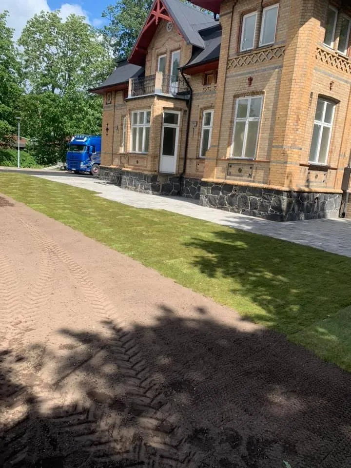 Gräsläggning och grässådd vid Adolfsbergskyrkan i helsingborg. Planerat ut matjord och lagt till kantsten. Arbetet utfört åt Skanska